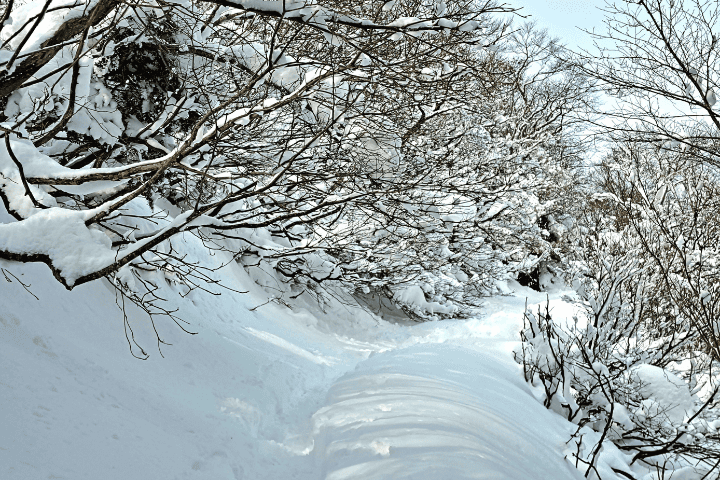 ただし、雪が深い日や新雪が積もった直後は踏み跡が消えやすいため、ルートを見失わないよう注意が必要です。